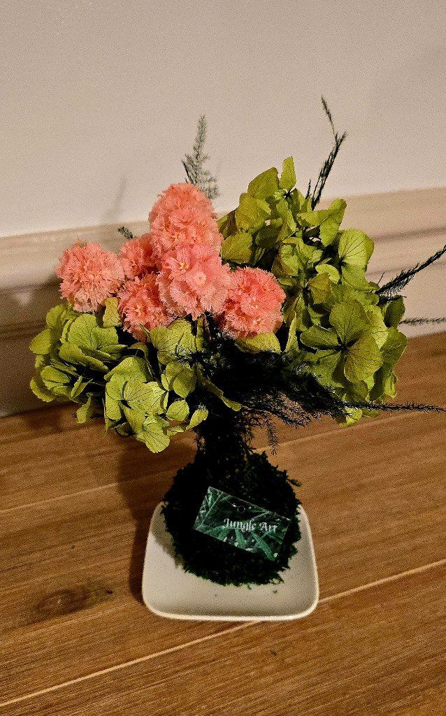 Scabieuse étoilée, hortensias, Aspargus plumus
